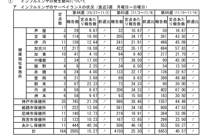 兵庫のインフルすごい